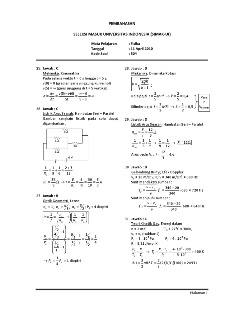 Artikel ini akan membeberkan berbagai strategi untuk menghadapi simak ui 2019 dilengkapi pembahasan soal soal simak ui tahun tahun lalu. Matematika ipa, fisika, kimia, biologi. Pilih prodi ipa maka materi ujiannya mencakup : Kunci simak ui 2012 pdf document. Pembahasan soal simak ui 2018 kemampuan ipa fisika pdf dan.
